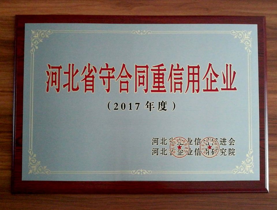 熱烈祝賀利德爾獲得“河北省守合同重信用企業(yè)”等榮譽(yù)稱號(hào)