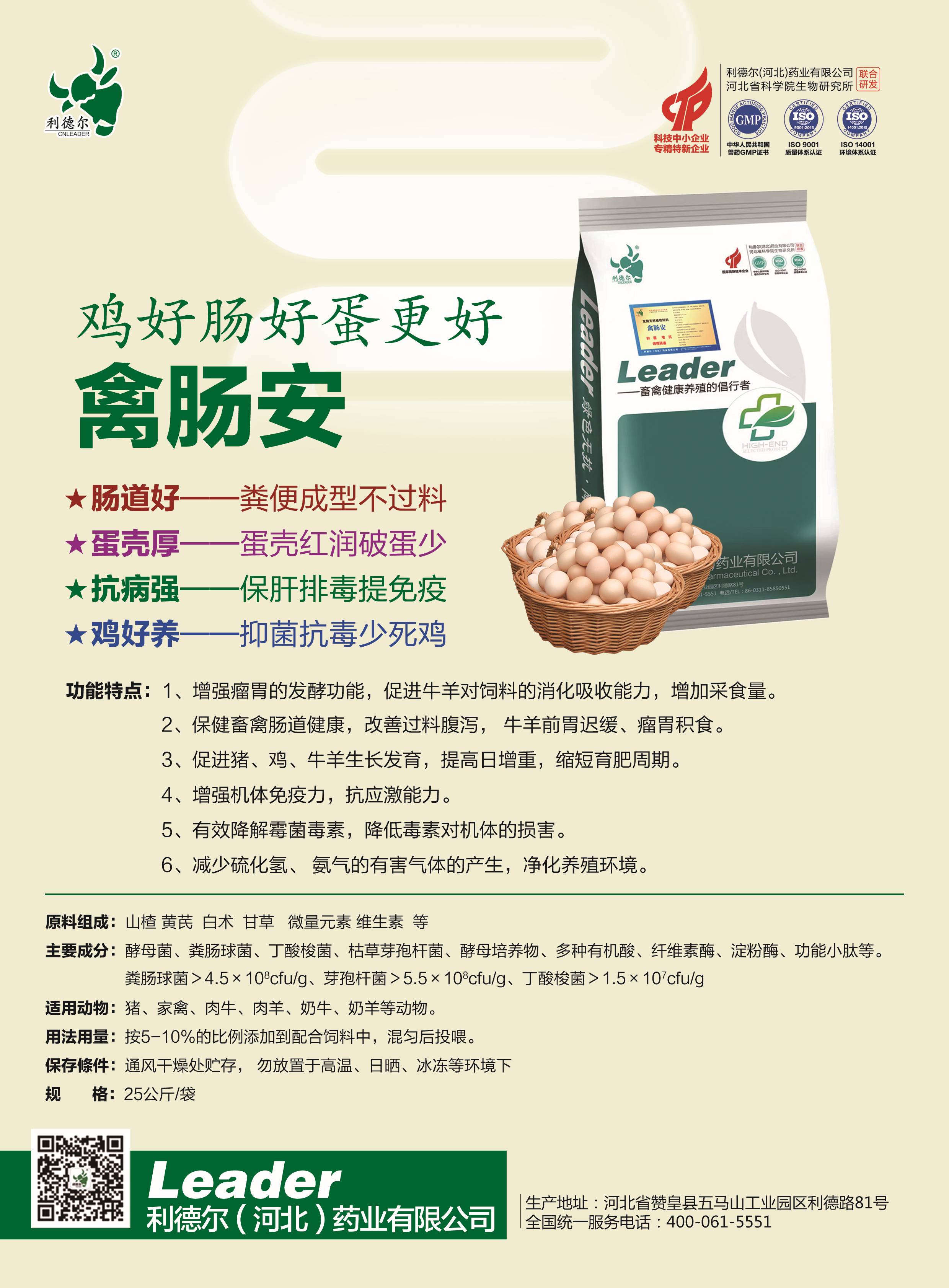 - 蛋雞日糧中添加禽腸安,蛋黃顏色加深,蛋殼強(qiáng)度提高,膽固醇含量降低。