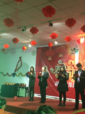 1月12日,公司的辦公樓,三樓會(huì)議室,裝扮的花團(tuán)錦簇,到處充滿了歡樂(lè)的氣氛,每一個(gè)人臉上洋溢著歡快的笑容,現(xiàn)場(chǎng)的背景以紅色為主調(diào),一排排紅色的燈籠,象征著生機(jī)勃勃的企業(yè)和紅紅火火的新春氣氛。