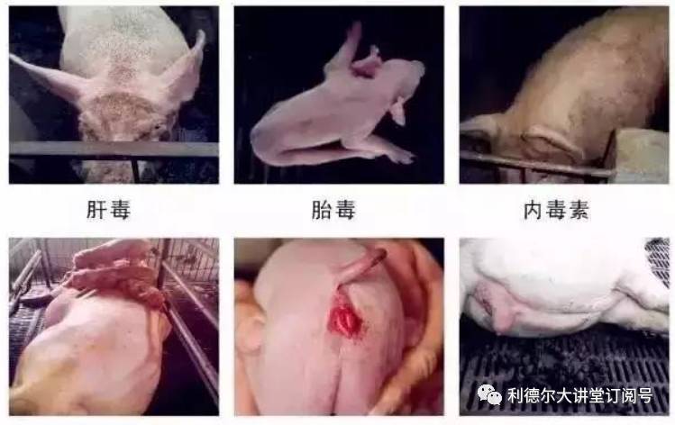 胎毒:特定的內(nèi)毒素經(jīng)血液循環(huán)進(jìn)入胎盤,導(dǎo)致胎兒器官先天性損傷,可引起流產(chǎn)、死胎、弱仔、仔豬八字腿、陰戶紅腫、高死亡奶豬腹瀉等。