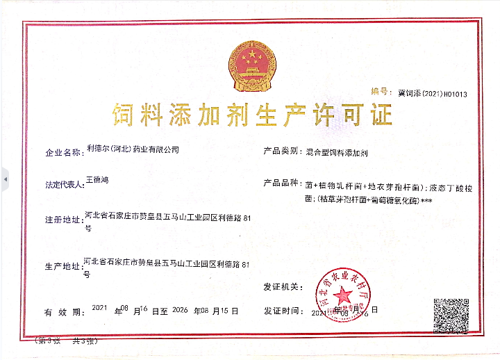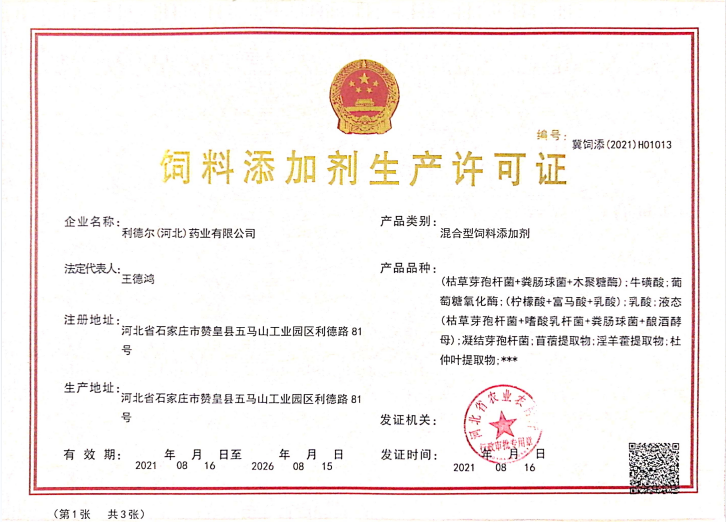 首頁(yè) > 關(guān)于我們 > 飼料添加劑生產(chǎn)許可證