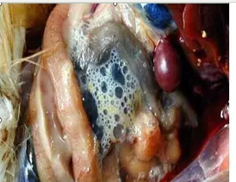 大多數(shù)情況下,氣囊炎不是一個單獨的疾病,僅僅是某些全身性感染的癥狀。臨床上最常見的是大腸桿菌感染引起的氣囊炎:病雞精神沉郁,呼吸困難,有啰音,咳嗽。剖檢可見氣囊混濁,有大量混濁的滲出液,重者氣囊壁增厚,有大小不等的干酪樣凝塊。除大腸桿菌外,新城疫病毒、傳染性法氏囊炎病毒、傳染性支氣管炎病菌、傳染性鼻炎病毒、支原體、曲霉菌等病原微生物,感染肉雞后,都可以引起氣囊炎?梢哉f,引起氣囊炎的病原十分復(fù)雜,臨床治療若沒有明確的目標(biāo),判斷不準(zhǔn)病原,選不準(zhǔn)有效藥物,很難奏效。