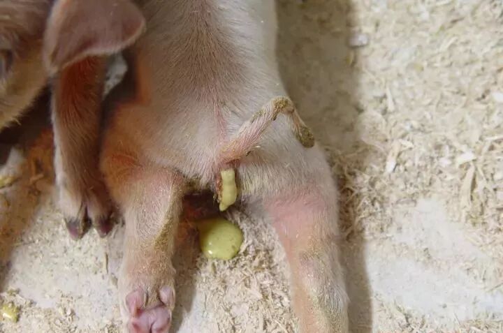 仔豬黃痢多發(fā)生于產(chǎn)后1周之內(nèi),拉黃色稀便,很少有嘔吐,糞便呈糊狀。