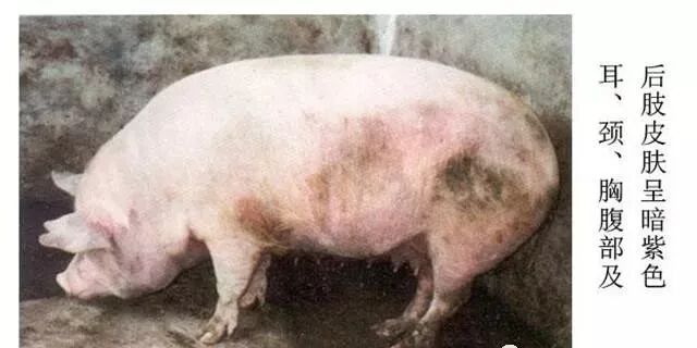 類似豬瘟和流感,體溫升高至40-42℃,病豬精神沉郁,食欲減少,嚴(yán)重的食欲廢絕。頭、耳和四肢下部有瘀血斑,后肢軟弱無力,走路搖晃,喜臥,呼吸困難,咳嗽。嚴(yán)重時(shí)呈犬坐姿勢,口流白沫,懷孕母豬可發(fā)生流產(chǎn)。