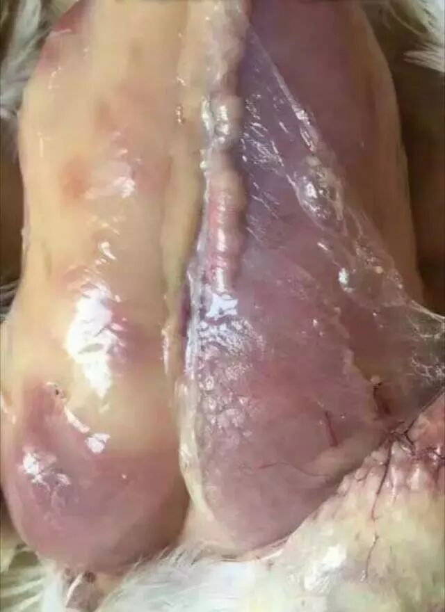 熱應(yīng)激引起大腸桿菌、支原體等繼發(fā)感染由于雞的張口呼吸,失去鼻腔黏膜的屏障作用,使得漂浮于空氣中的大腸桿菌、支原體的病原暢通無阻地經(jīng)過氣管進(jìn)入肺臟、氣囊、胸腹腔,引起嚴(yán)重的心包炎、氣囊炎、肝周炎、腹膜炎、輸卵管炎等炎癥,導(dǎo)致死亡率增加,生產(chǎn)性能降低。