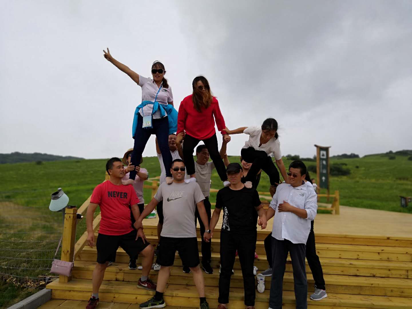 每走到一處景點就會停下瀏覽,草地摩托,搭人墻,盡情玩耍。行車中我們玩游戲,石頭剪刀布,輸?shù)南萝嚺懿剑覀凃?qū)車緊跟其后,由于下雨,游戲不能進行下去。塞罕壩的白樺樹,松樹是這里的主要林木,我們來到一處松樹林,席地而坐,開起了公司小會議,這個意境不錯哦,不過時間長了,凍的有點小發(fā)抖!哈哈! 晚上住在一家農(nóng)家小院,新鮮的蔬菜自己可以去摘,烤羊腿,晚上篝火,這是草原之行,大家都期盼的,不顧一天的疲憊,唱歌,圍著篝火跳躍,奔跑,怎么嗨怎么玩!