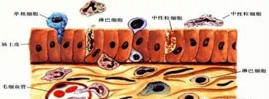 分泌型免疫球蛋白A(sIgA)起著關鍵作用,它是在腸道固有層產(chǎn)生并經(jīng)過腸道上皮細胞的加工后而分泌到腸腔中的,可阻斷細菌、毒素和病毒等抗原在黏膜上的黏附,起到清除抗原的作用。