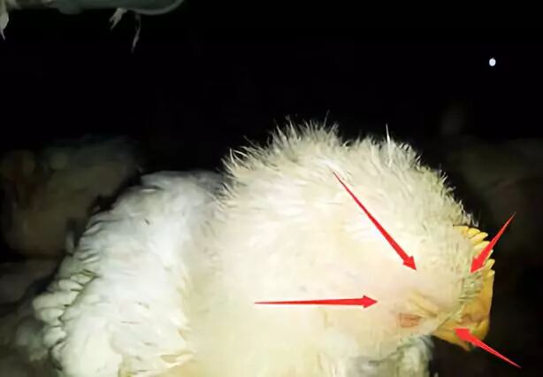 8、頻繁使用刺激性很強(qiáng)的消毒藥噴霧,或者在內(nèi)拋灑石灰,造成雞因刺激過(guò)強(qiáng)而引起的頭部腫脹。