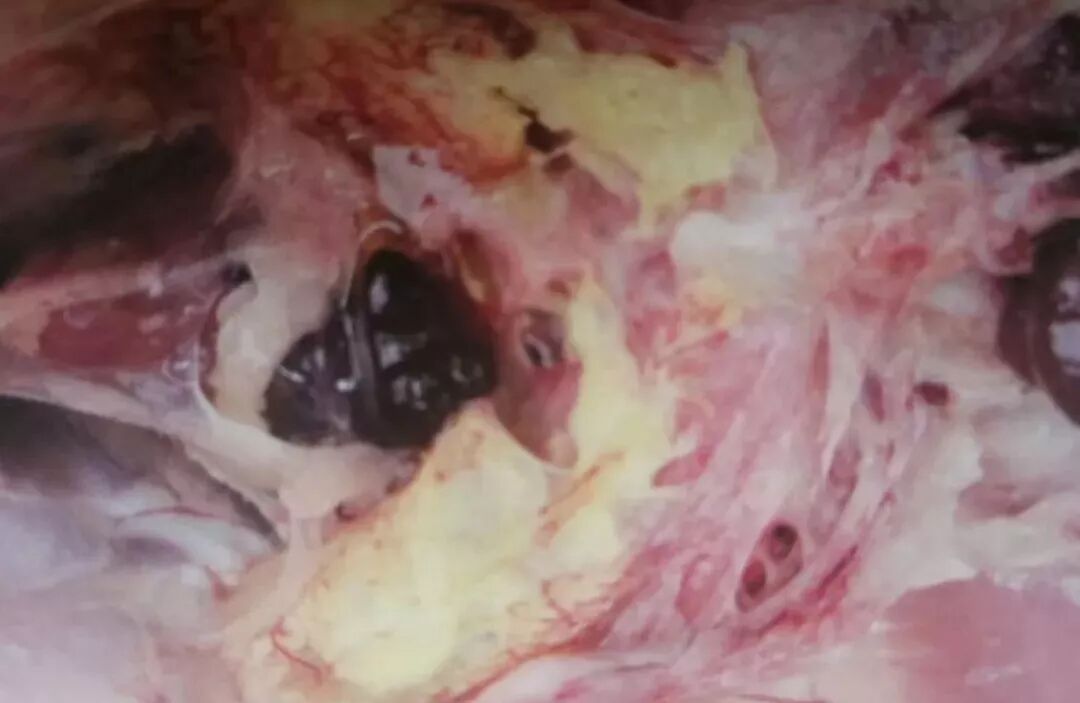 首先從臨床癥狀上你會發(fā)現(xiàn),單純的氣囊炎可見呼吸困難、 有“呼!薄翱羞辍彼Ρ牵[頭流淚等,混合時可見相應(yīng)的癥狀。我們最常見的解剖變化就是氣囊混濁、泡沫、增厚、血管增生、有干酪物東西形成,如果有霉菌毒素造成的你還會看到氣囊有霉菌斑。