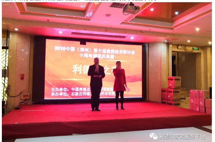 11月7日晚,由中國(guó)養(yǎng)殖業(yè)聯(lián)盟和中國(guó)獸藥114網(wǎng)聯(lián)合主辦的中國(guó)(鄭州)第十屆禽病技術(shù)研討會(huì)在鄭州德億大酒店舉行,晚宴由石家莊利德爾藥業(yè)承辦。