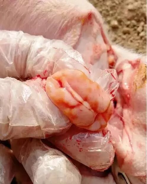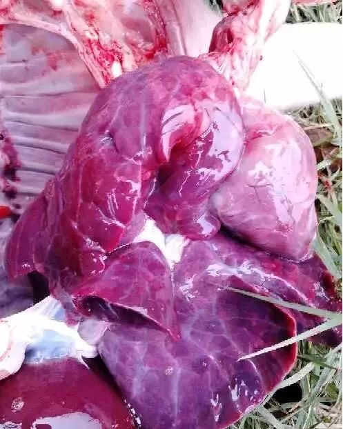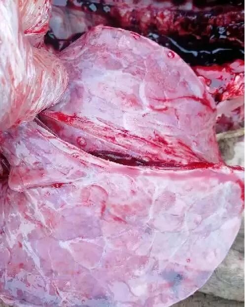 腹股溝淋巴結(jié),下頜淋巴結(jié),肺門淋巴結(jié)出血,腫大,尤其是肺門淋巴結(jié)出現(xiàn)大理石樣出血,是藍耳病的特征之一。(這一點注意和豬瘟區(qū)別,豬瘟是全身淋巴結(jié)都表現(xiàn)為大理石樣出血)