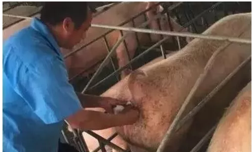然后一手張開母豬陰門,一手持輸精管插人陰道,先向斜上方推進(jìn)10厘米左右,再向水平方向推進(jìn)30厘米左右,手感不能再推進(jìn)時(shí),說明輸精管已插入子宮頸,便可緩慢地注入精液,如發(fā)生精液逆流,可暫停注入,活動(dòng)一下輸精管后再注入,直至輸完,再慢慢抽出輸精膠管。