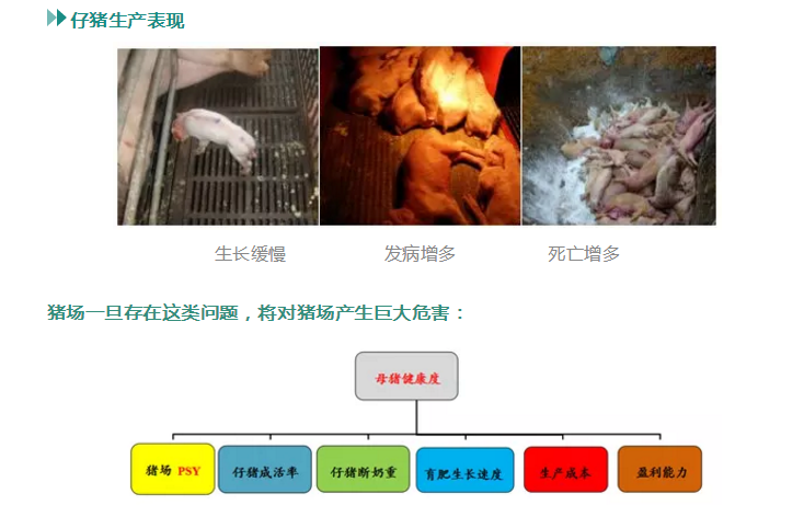 2.母豬自身體內(nèi)毒素蓄積較多。原因包括:霉菌毒素、內(nèi)毒素、外毒素、抗生素、重金屬以及母豬自體毒素等等。