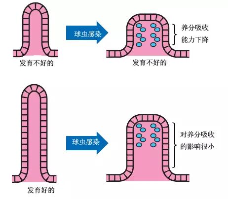 球蟲病感染是絨毛發(fā)育不好的一個很好的例子。