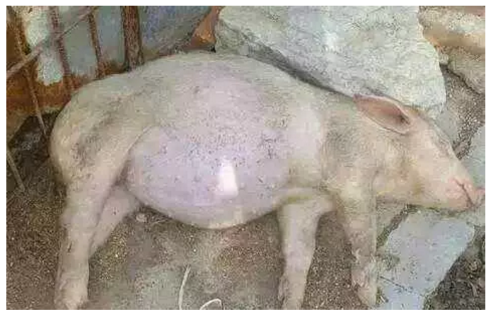 急性脹氣死亡的豬,往往沒有任何臨床癥狀,突然腹部膨脹,呼吸急促,就臥倒不起。有些早上好好的,中午就命歸西天了。這種病發(fā)病急、病程短、死亡快,一般情況都不給你留有治療時(shí)間。