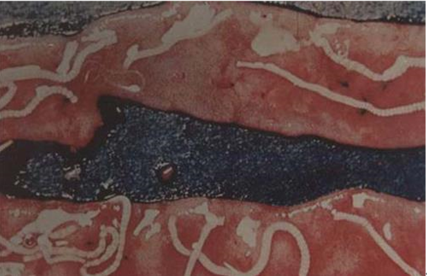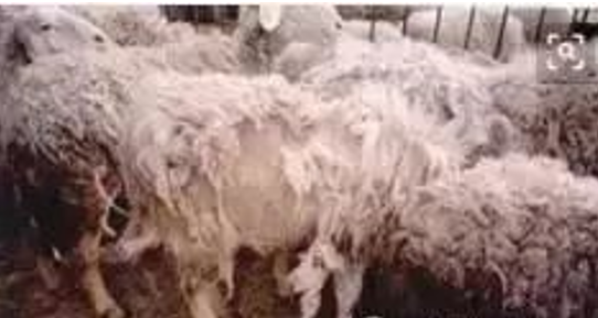 牛、 羊皮膚一塊一塊的脫毛,形成淺黃色痂皮,如輕輕揭開,則在皮膚相連端痂皮下可見許多黃白色癢螨在爬動。
