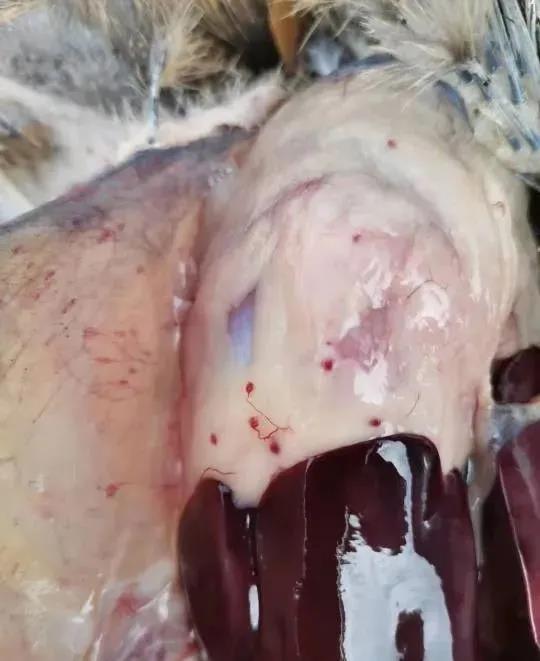蟲體積聚成團(tuán),導(dǎo)致腸阻塞,甚至腸破裂而引起腹膜炎;其代謝產(chǎn)物被吸收后可引起中毒反應(yīng),出現(xiàn)神經(jīng)癥狀。臨床常見糞便稀薄且有黏液,食欲降低,渴飲增加,迅速消瘦,精神沉郁,兩翅下垂,頭和頸扭曲,蛋雞產(chǎn)蛋量明顯下降或停產(chǎn),最后極度衰竭而死亡。對(duì)病死雞剖檢可見腸黏膜增厚,出血,腸腔內(nèi)含有大量黏液,惡臭。棘溝賴?yán){蟲寄生時(shí)在十二指腸壁上有結(jié)核樣結(jié)節(jié)。腸黏膜下附著蟲體。