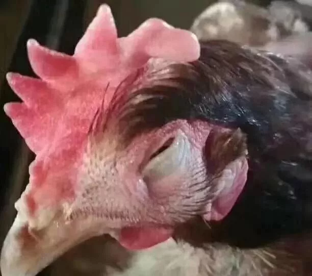 腫頭綜合癥:由禽肺病毒引起的頭部、面部水腫,呼吸困難,咳嗽流涕。本病具有傳染性,能由一舍傳向另一舍,肉仔雞發(fā)病后死亡率增多,產(chǎn)蛋雞發(fā)生時產(chǎn)蛋率下降15%左右。