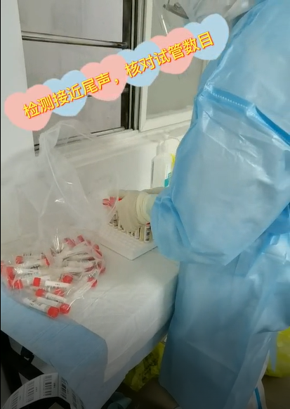 試管掃碼也需要仔細(xì)核對,不然就會信息錯誤,給檢測結(jié)果帶來隱患,一些人檢測后,信息查收不到,看似簡單的工作,里面不能有半點馬虎。之前只是聽說防護服一旦穿上,任務(wù)沒有結(jié)束就不能脫下,吃飯,喝水,上廁所,幾乎不用想,一般情況下是沒有的,這次真正的體驗到了其中的艱辛,這次核酸檢測整個小區(qū)2900多人,用了近7個小時,檢測完,還要去核對一下數(shù)量和檢測的試管碼信息,確保無誤,從晚上6點開始準(zhǔn)備到凌晨一點結(jié)束,累的腰酸背痛,脫下防護服,消毒,物業(yè)給準(zhǔn)備了晚餐,太晚了,回家草草吃點洗洗休息。