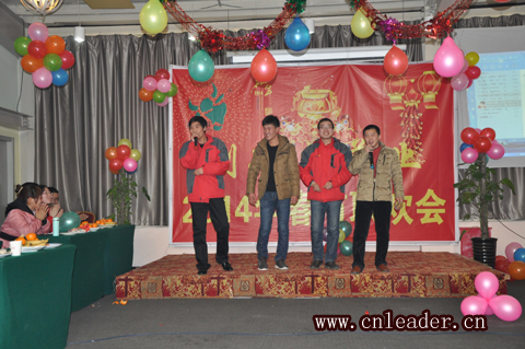 王總首先給大家送去新年誠摯的祝福,和對2014年的展望。然后由馬棟梁的《路在何方》,把聯(lián)歡會帶進(jìn)高潮,他的聲音渾厚有力,贏來陣陣掌聲。日常的工作生活中,每天都在和人打交道,如何能夠明白對方的意思呢?《善解人意》,就是很好的表證。李萌和馬棟梁的《心雨》對唱,如同金童玉女再現(xiàn)。公司的四位帥哥,同臺亮相,為大家表演《三句半》。庫管的楊艷,平時活潑愛動,這次為大家送上《老婆最大》一首歌,又給大家?guī)須g快的享受,掌聲不斷。《同心協(xié)力》的運(yùn)氣球游戲,讓觀眾們只喊加油!呂海竹的《我只在乎你》,歌聲優(yōu)美動聽,讓小朋友都不由的上去和她同唱…………,后面的節(jié)目一個比一個精彩,所有的人都沉浸在歡樂的氣憤中。我們的王總也被這個場景感動,不由的一下為大家送上兩首歌《最真的夢》和《說句心里話》,下面掌聲歡呼聲一片。我們的嘉賓閆亮導(dǎo)師,也為觀眾送上了《光陰的故事》,平時語言能力很強(qiáng)的閆導(dǎo),沒想到,歌聲也那么動聽。聯(lián)歡會中還穿插著,給優(yōu)秀員工頒獎,表示對他們的感謝和鼓勵,最后一一首《步步高》把聯(lián)歡會帶進(jìn)尾聲。